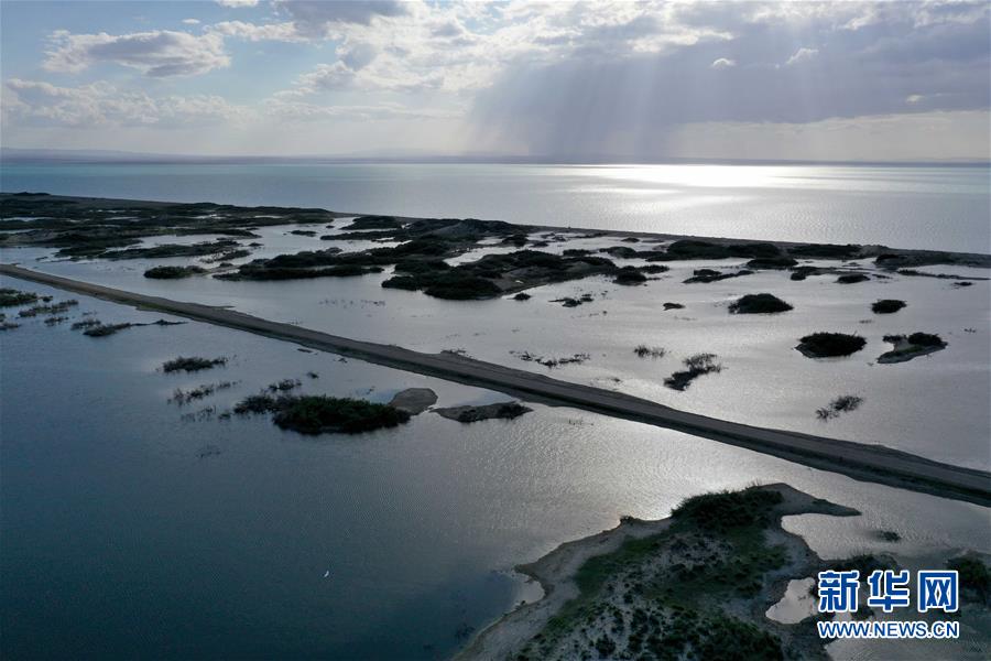 6月18日拍攝的新疆烏倫古湖國(guó)家濕地公園(無(wú)人機(jī)照片)。烏倫古湖國(guó)家濕地公園位于新疆阿勒泰地區(qū)福??h城以西,由烏倫古湖和吉力湖兩部分組成。烏倫古湖濕地公園是遷徙候鳥(niǎo)飛越天山和阿爾泰山的“能量補(bǔ)充站”,良好的濕地生態(tài)吸引著大量遷徙鳥(niǎo)類在此集結(jié)成群,繁殖棲息,成為一道靚麗的風(fēng)景線。新華社記者 沙達(dá)提 攝