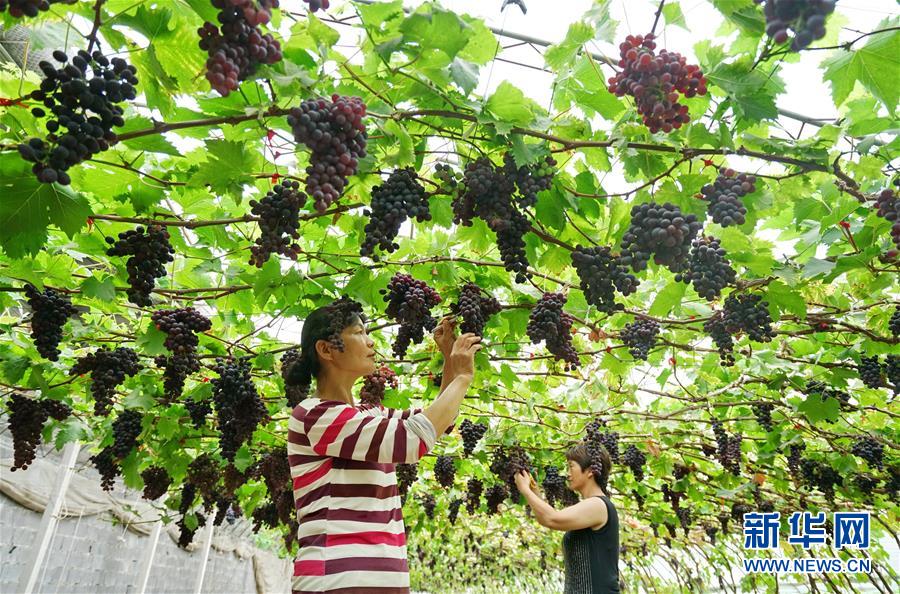 6月21日,灤州市雷莊鎮(zhèn)吉祥現(xiàn)代農(nóng)業(yè)園區(qū)的員工在打理種植的葡萄。近年來,河北省灤州市積極調(diào)整農(nóng)業(yè)產(chǎn)業(yè)結(jié)構(gòu),鼓勵當(dāng)?shù)睾献魃绾娃r(nóng)戶發(fā)展果蔬種植,豐富當(dāng)?shù)剞r(nóng)產(chǎn)品種類,越來越多的農(nóng)民依靠“果園子”“菜籃子”鼓起了“錢袋子”。新華社記者牟宇攝