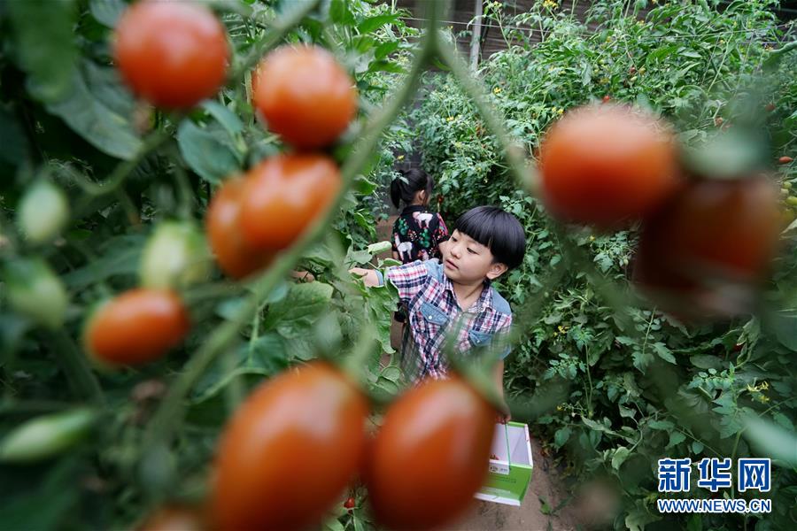6月21日,小朋友在灤州市雷莊鎮(zhèn)吉祥現(xiàn)代農(nóng)業(yè)園區(qū)大棚內(nèi)采摘櫻桃西紅柿。近年來,河北省灤州市積極調(diào)整農(nóng)業(yè)產(chǎn)業(yè)結(jié)構(gòu),鼓勵當(dāng)?shù)睾献魃绾娃r(nóng)戶發(fā)展果蔬種植,豐富當(dāng)?shù)剞r(nóng)產(chǎn)品種類,越來越多的農(nóng)民依靠“果園子”“菜籃子”鼓起了“錢袋子”。新華社記者牟宇攝