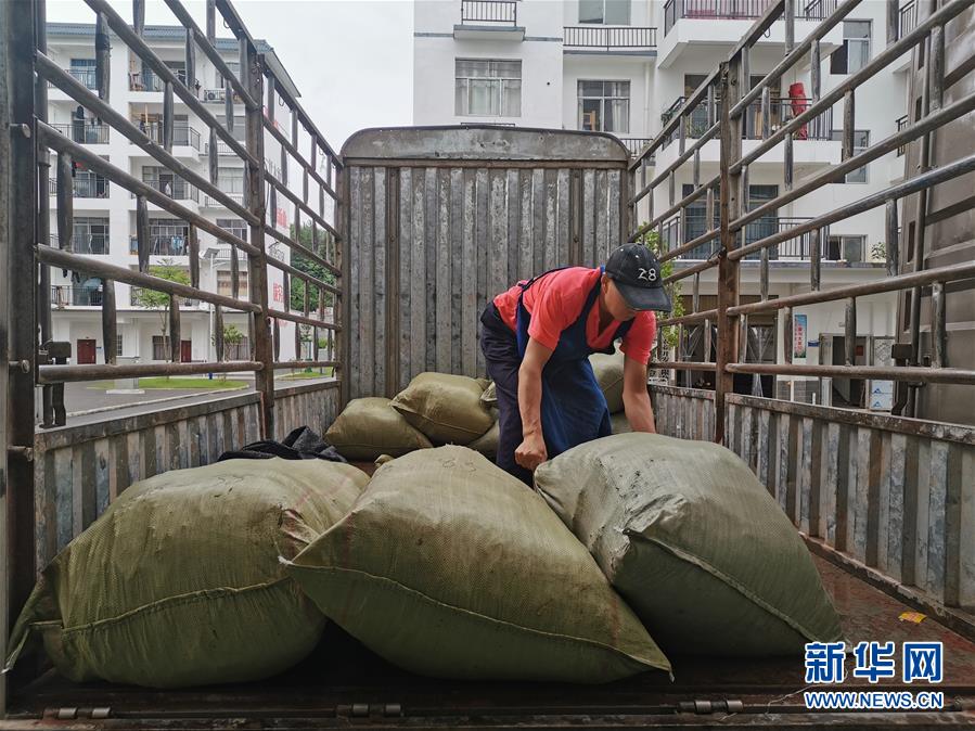 6月18日,在湖南省張家界市桑植縣,康華粽葉扶貧工廠的工人在搬運(yùn)粽葉。新華社記者阮周?chē)鷶z
