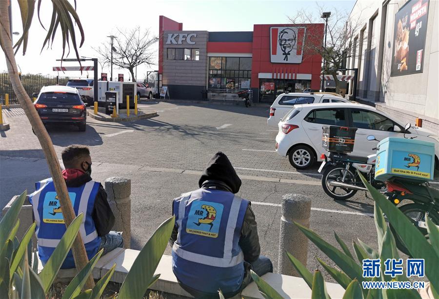 6月22日,外賣配送員坐在南非約翰內(nèi)斯堡一家快餐店外休息。南非衛(wèi)生部22日說(shuō),過(guò)去24小時(shí)該國(guó)新增確診病例4288例,累計(jì)確診101590例,占非洲大陸確診總數(shù)約三分之一;累計(jì)死亡1991例。南非的單日新增確診病例已連續(xù)多天保持在4000例以上。新華社記者陳誠(chéng)攝
