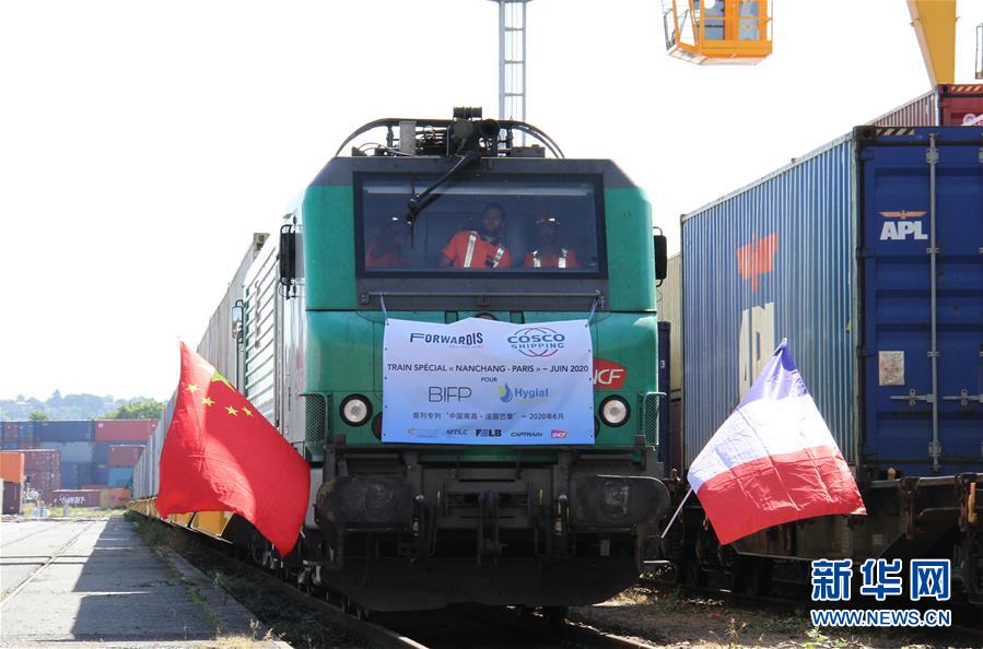 新華社巴黎6月23日電(記者徐永春)歷經19天,跨越上萬公里,滿載防疫物資的中歐班列23日抵達法國巴黎。此次班列是中法首趟抗疫物資專列,載運口罩、手套、水溶袋及免觸碰消毒液機等產品,貨值達1000萬歐元。