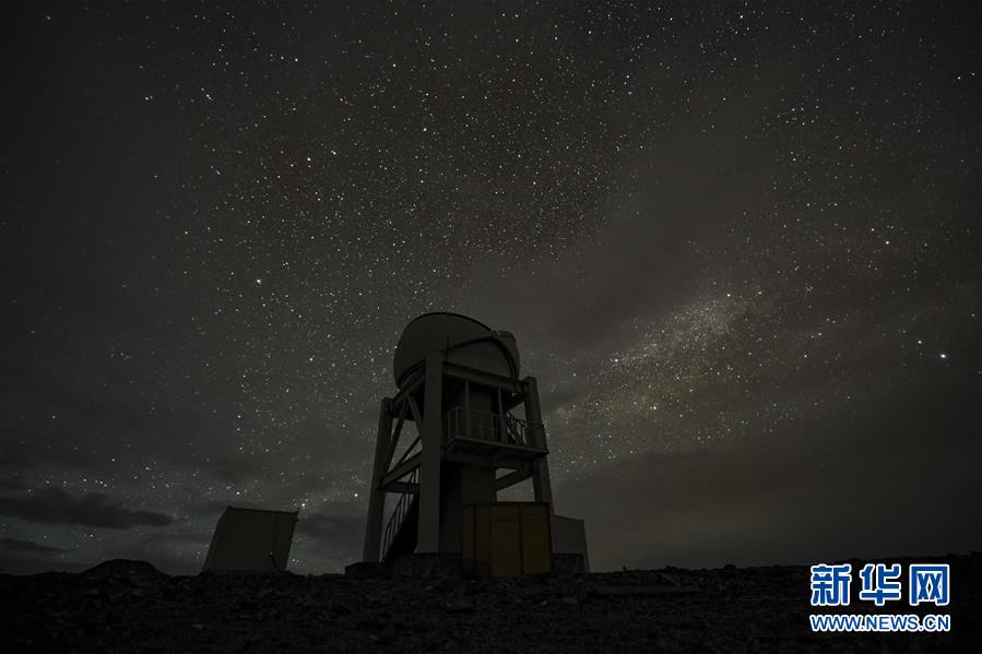 星空下的中國(guó)科學(xué)院新疆天文臺(tái)慕士塔格觀測(cè)站一角(6月16日攝,長(zhǎng)時(shí)間曝光)。新華社記者胡虎虎攝