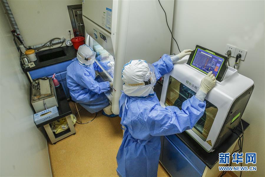6月23日,兩位檢驗人員在實驗室內工作。6月15日,北京市普仁醫(yī)院PCR實驗室正式啟用,并立即投入到新冠肺炎病毒核酸檢測工作之中,為新冠肺炎疫情防控增添利器。普仁醫(yī)院PCR實驗室啟用以來,除了來自本院發(fā)熱門診、門急診、病房和核酸檢測采樣點的樣本之外,還承接了社區(qū)以及東城區(qū)集中核酸檢測點采集的部分樣本。新華社記者張玉薇攝