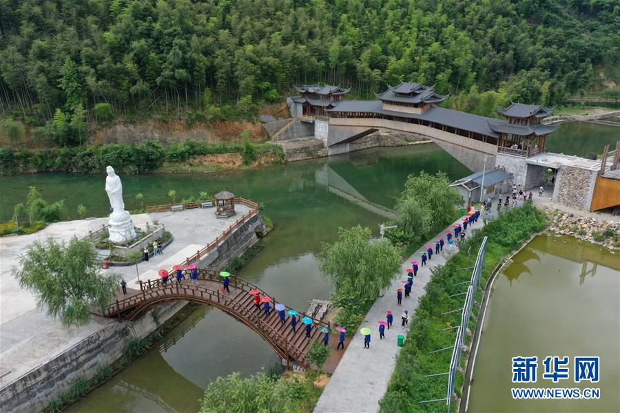 6月24日,福建政和縣外屯鄉(xiāng)群眾在湖屯村舉行走橋活動(無人機(jī)照片)。當(dāng)日,福建省政和縣舉行第三屆中國·屯福橋端午民俗文化節(jié)。端午節(jié)臨近,各地舉行包粽子、做香包、賽龍舟等豐富多彩的民俗文化活動,迎接傳統(tǒng)佳節(jié)的到來。新華社記者林善傳攝