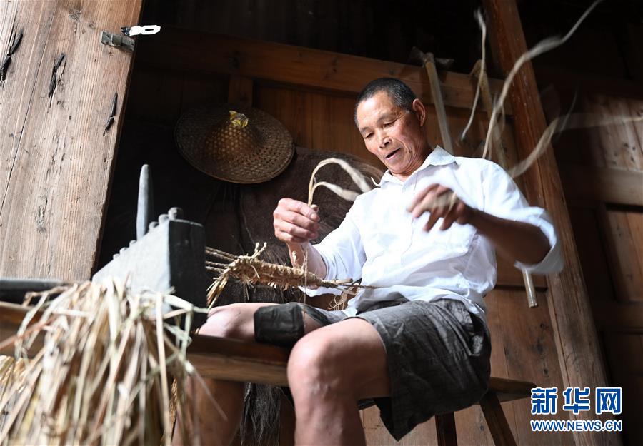 6月24日,福建政和縣外屯鄉(xiāng)湖屯村村民展示民間編草鞋手藝。當(dāng)日,福建省政和縣舉行第三屆中國·屯福橋端午民俗文化節(jié)。端午節(jié)臨近,各地舉行包粽子、做香包、賽龍舟等豐富多彩的民俗文化活動,迎接傳統(tǒng)佳節(jié)的到來。新華社記者林善傳攝