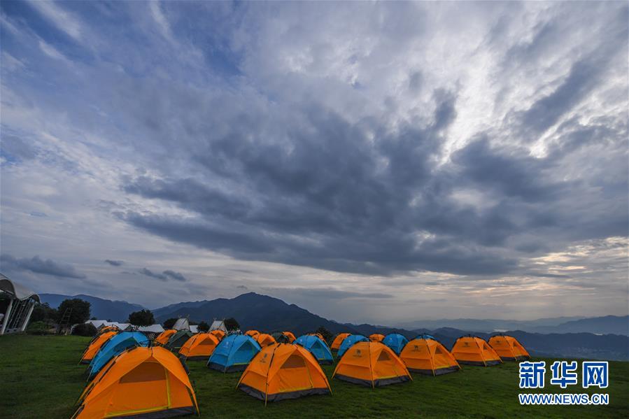 6月27日在杭州市富陽區(qū)常安鎮(zhèn)永安山頂拍攝的帳篷酒店。近期,浙江省杭州市富陽區(qū)場(chǎng)口鎮(zhèn)、常安鎮(zhèn)和湖源鄉(xiāng)組團(tuán)開啟了一場(chǎng)夏季“綠水青山嘉年華”。這幾個(gè)壺源溪流域鄉(xiāng)鎮(zhèn)整合生態(tài)旅游資源,組團(tuán)開發(fā)山村旅游項(xiàng)目,游客可以參與壺源溪水上游樂、露營永安山頂、特色農(nóng)產(chǎn)品集市和瓜果節(jié)等特色活動(dòng)。新華社記者徐昱攝