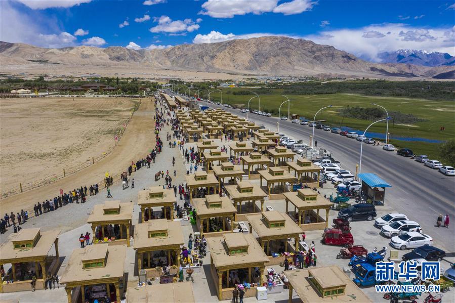 6月25日,人們在新疆塔什庫爾干塔吉克自治縣端午節(jié)群眾性文化體育活動現(xiàn)場購物、品嘗美食、觀看賽馬(無人機照片)。當日,新疆塔什庫爾干塔吉克自治縣端午節(jié)群眾性文化體育活動在位于縣城附近的非物質文化遺產展示園拉開帷幕。本次活動為期三天,將舉辦豐富多彩的文藝演出和多項非物質文化遺產展示表演,充實居民和游客的節(jié)日文化生活。新華社記者胡虎虎攝