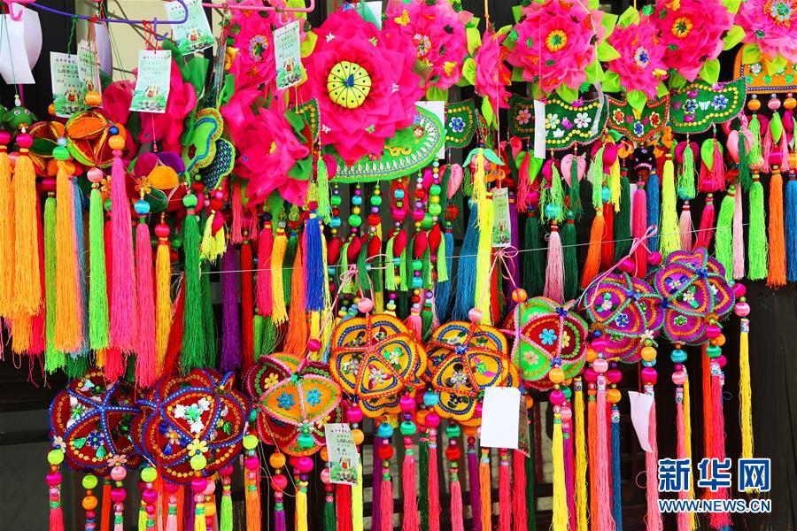 青海省互助土族自治縣舉辦的端午節(jié)香包“選美”大賽上展出的各類香包(6月24日攝)。新華社記者解統(tǒng)強攝