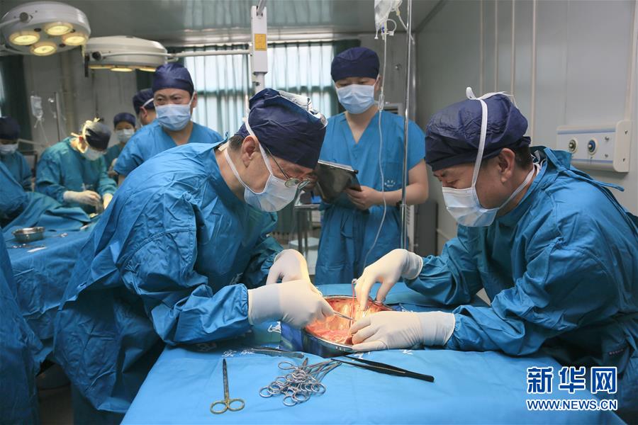 豬-猴異種肝心腎器官移植手術(shù)現(xiàn)場(chǎng)(6月13日攝)。日前,多基因編輯豬-恒河猴異種肝、心、腎器官移植在位于陜西西安的空軍軍醫(yī)大學(xué)西京醫(yī)院順利實(shí)施。研究團(tuán)隊(duì)使用豬內(nèi)源性逆轉(zhuǎn)錄病毒(PERV)敲除的13個(gè)基因修飾豬作為供體,將一個(gè)供體豬的肝、心、腎分別移植給3只恒河猴受體。目前,移植肝和對(duì)應(yīng)的受體猴已存活16天,突破國(guó)際上的豬-猴輔助性肝移植最長(zhǎng)存活時(shí)間記錄。這項(xiàng)研究有助于未來解決器官短缺造成的臨床器官移植發(fā)展受限難題。新華社發(fā)(張懿楠攝)
