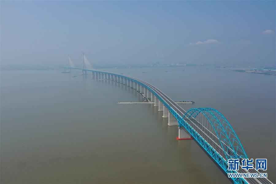 滬蘇通長(zhǎng)江公鐵大橋(6月30日攝,無(wú)人機(jī)照片)。即將于7月1日通車的滬蘇通長(zhǎng)江公鐵大橋北起江蘇南通,南至江蘇張家港,公鐵合建跨江正橋全長(zhǎng)5827米,為集合高速公路、客貨混線鐵路、高速鐵路的“三合一”過(guò)江通道,建成通車后將有效促進(jìn)長(zhǎng)三角城市群跨江融合、協(xié)同發(fā)展。新華社記者季春鵬攝