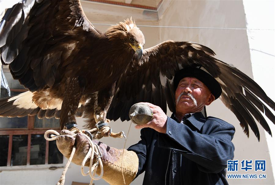 6月29日,庫爾馬西·胡特曼撫摸他的獵鷹。馴鷹習(xí)俗是柯爾克孜族長期以來形成的一種生產(chǎn)生活習(xí)俗,新疆克孜勒蘇柯爾克孜自治州阿合奇縣牙朗奇村的庫爾馬西·胡特曼今年69歲,是國家級非物質(zhì)文化遺產(chǎn)代表性項(xiàng)目柯爾克孜族馴鷹習(xí)俗的代表性傳承人。庫爾馬西的家族世代馴鷹。從小與鷹相處,庫爾馬西成為名副其實(shí)的“鷹語者”。要將兇猛的野鷹訓(xùn)練成聽從指揮的獵鷹絕非易事,需要馴鷹人投入大量心血,精心喂養(yǎng)。一代代馴鷹人之間口耳相傳,形成了一套涵蓋取鷹、熬鷹、馴鷹、放鷹等方面的絕學(xué)?!苞検怯徐`性的動物,懂得感恩,會通過抖動羽毛來表示喜悅,表示對你的愛?!睅鞝栺R西說,“鷹也會因?yàn)槲业目洫劷o我信號,通過叫聲、身體語言告訴我,它理解了我的話?!痹诳聽柨俗巫宓鸟Z鷹傳統(tǒng)里,獵鷹在為主人“服役”一到五年后,將重返天空,獲得自由。隨著野生動物保護(hù)相關(guān)法規(guī)的出臺,當(dāng)?shù)匾呀柜Z鷹人取鷹捕鷹,目前已馴養(yǎng)的獵鷹放飛后恐將無以為繼?;蛟S,庫爾馬西這一代人,將成為最后的“鷹語者”。新華社記者宋彥樺攝