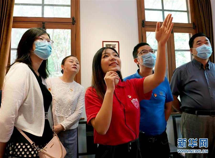 6月30日,復(fù)旦大學(xué)《共產(chǎn)黨宣言》展示館黨員志愿服務(wù)隊(duì)隊(duì)員、復(fù)旦大學(xué)馬克思主義學(xué)院博士生陸婷婷(右一)在為觀眾講解。陳望道是《共產(chǎn)黨宣言》首個(gè)中文全譯本的翻譯者,也是新中國(guó)成立后復(fù)旦大學(xué)的第一任校長(zhǎng)。2018年5月,復(fù)旦大學(xué)將陳望道故居改造為《共產(chǎn)黨宣言》展示館,該校一批青年教師和學(xué)生組建黨員志愿服務(wù)隊(duì),面向廣大師生和社會(huì)各界開展宣講活動(dòng)。復(fù)旦大學(xué)《共產(chǎn)黨宣言》展示館黨員志愿服務(wù)隊(duì)名為“星火”,由該校青年教師、博士生、碩士生黨員組成。兩年多時(shí)間里,志愿服務(wù)隊(duì)共服務(wù)學(xué)校及社會(huì)各界參觀者近5萬人次,年均講解700多場(chǎng)。新華社記者劉穎攝