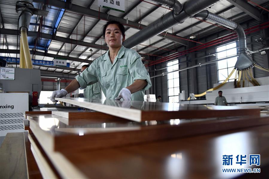 6月30日,在費(fèi)縣云峰莫干山裝飾材料有限公司,工人在加工定制家具面板。地處沂蒙革命老區(qū)的山東省臨沂市費(fèi)縣探沂鎮(zhèn)近年來(lái)圍繞鄉(xiāng)村振興戰(zhàn)略,謀劃“一鎮(zhèn)一業(yè)”,以木業(yè)產(chǎn)業(yè)為抓手,積極引導(dǎo)全鎮(zhèn)3136家木業(yè)企業(yè)進(jìn)行園區(qū)化、集約化、智能化發(fā)展,成為遠(yuǎn)近聞名的“木業(yè)特色小鎮(zhèn)”。2019年,該鎮(zhèn)規(guī)模以上工業(yè)總產(chǎn)值187億元,農(nóng)民人均純收入2萬(wàn)元左右,木業(yè)產(chǎn)業(yè)有力助推當(dāng)?shù)氐泥l(xiāng)村振興。新華社記者郭緒雷攝
