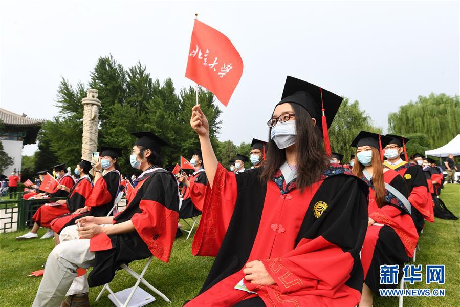 7月2日,北京大學(xué)2020屆畢業(yè)生在畢業(yè)典禮上。當(dāng)日,北京大學(xué)舉行2020年畢業(yè)典禮。由于疫情防控需要,今年的典禮在北京大學(xué)辦公樓西側(cè)廣場(chǎng)、靜園草坪、未名湖等九個(gè)會(huì)場(chǎng)舉行,并面向全球進(jìn)行中英文雙語(yǔ)直播,僅部分在校畢業(yè)生現(xiàn)場(chǎng)參加,更多畢業(yè)生通過(guò)線上直播參與畢業(yè)典禮。新華社記者任超攝