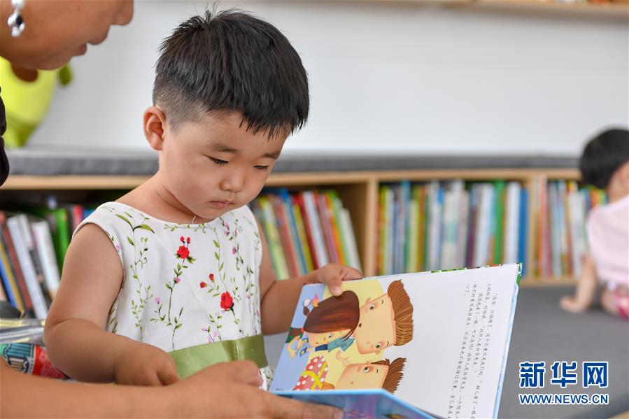 7月2日,在長春市少年兒童圖書館平陽社區(qū)繪本主題分館,家長為小朋友講故事。長春市少年兒童圖書館平陽社區(qū)繪本主題分館位于南關區(qū)曙光街道平陽社區(qū),目前藏書約5000冊。該館于6月30日揭牌開館,由長春市少年兒童圖書館和南關區(qū)曙光街道辦事處共同打造,是長春首個繪本主題圖書分館??蔀橹苓吘用窈蛢和峁﹫D書借閱、數(shù)字閱讀體驗、親子活動、少兒公益活動等服務。新華社記者張楠攝