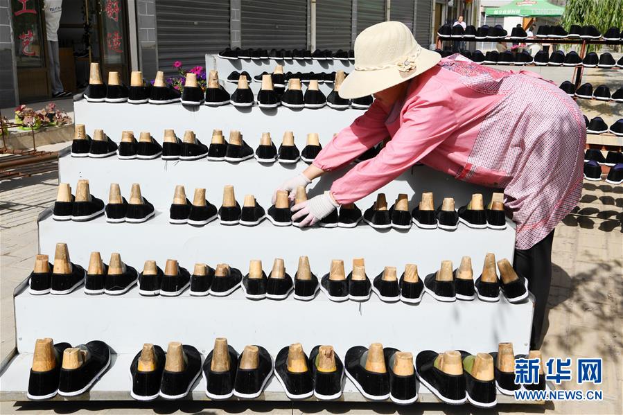 7月2日,臨夏縣百利布鞋加工農(nóng)民專業(yè)合作社員工在擺放布鞋。甘肅省臨夏回族自治州臨夏縣將布鞋加工定為重點(diǎn)扶持發(fā)展的產(chǎn)業(yè),采用“政府+公司+貧困戶”的產(chǎn)業(yè)扶貧模式,由政府主導(dǎo)、企業(yè)出資,在貧困村建設(shè)“扶貧車間”,吸納貧困群眾從事布鞋加工產(chǎn)業(yè)增加收入。截至2019年底,當(dāng)?shù)夭夹庸て髽I(yè)和加工戶遍及近百個(gè)行政村,從業(yè)人員達(dá)到4000多人,累計(jì)生產(chǎn)布鞋600多萬(wàn)雙,實(shí)現(xiàn)銷售收入2.32億元。新華社記者范培珅攝
