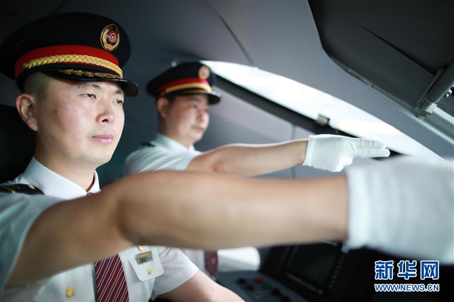 7月3日,擔任首發(fā)列車值乘工作的貴陽機務(wù)段司機在貴陽亮相。 新華社記者 劉續(xù) 攝