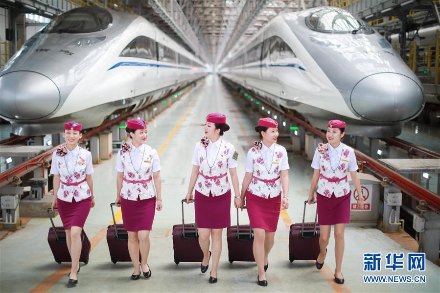 7月3日,擔任首發(fā)列車值乘工作的貴陽客運段乘務(wù)員在貴陽亮相。 新華社記者 劉續(xù) 攝