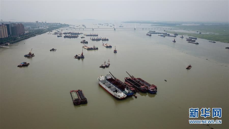 7月5日拍攝的岳陽洞庭湖主航道(無人機照片)。受持續(xù)強降雨和上游來水影響,洞庭湖城陵磯水位持續(xù)上漲。水文監(jiān)測數據顯示,截至7月5日16時,洞庭湖城陵磯水位達到32.75米,超警戒水位0.25米。當地防汛部門正嚴密監(jiān)控水情雨情,備好防汛物資并加強應急值守,力爭安全度汛。新華社記者陳澤國攝