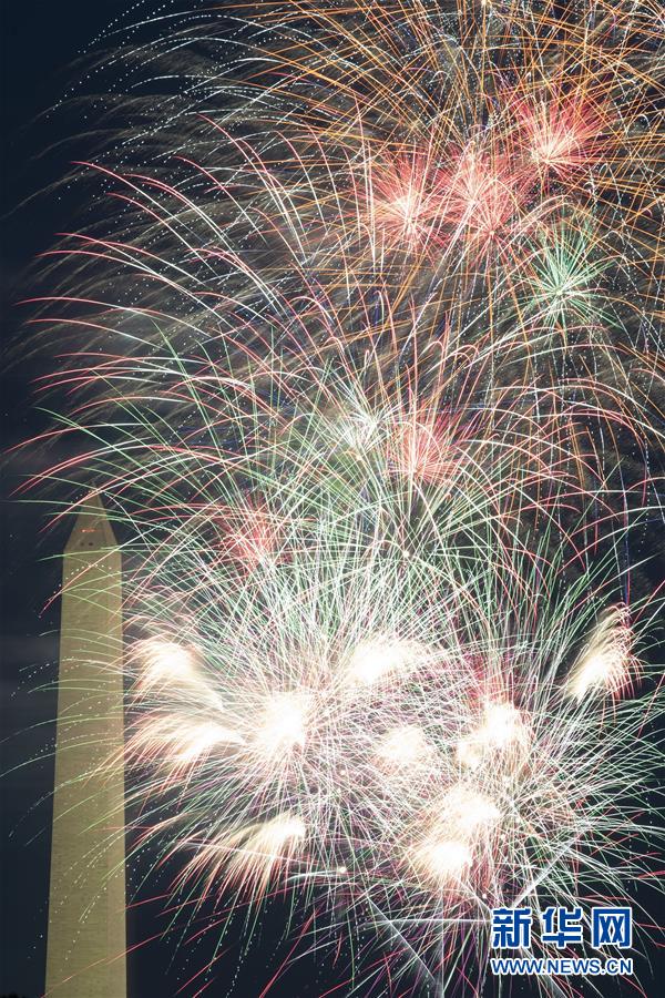 7月4日,焰火在美國華盛頓上空綻放,慶祝美國獨立日。當日是美國獨立日,美國多地疫情仍面臨嚴峻形勢。美國約翰斯·霍普金斯大學實時統(tǒng)計數(shù)據(jù)顯示,美國累計新冠確診病例4日已超過280萬例。新華社記者劉杰攝