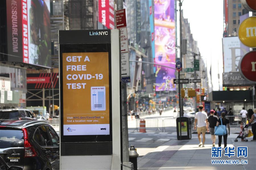 7月4日,美國紐約時報廣場上的行人和車輛稀少。當日是美國獨立日,美國多地疫情仍面臨嚴峻形勢。美國約翰斯·霍普金斯大學實時統(tǒng)計數(shù)據(jù)顯示,美國累計新冠確診病例4日已超過280萬例。新華社記者王迎攝