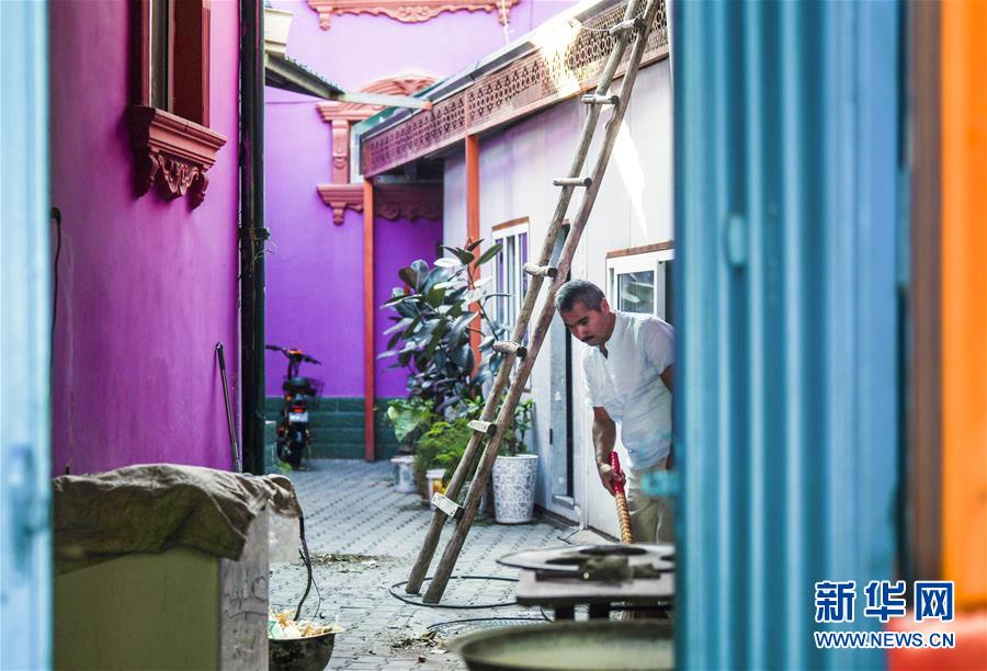 7月5日,在六星街的一家民居內(nèi),老人在打掃衛(wèi)生。新華社記者王菲攝