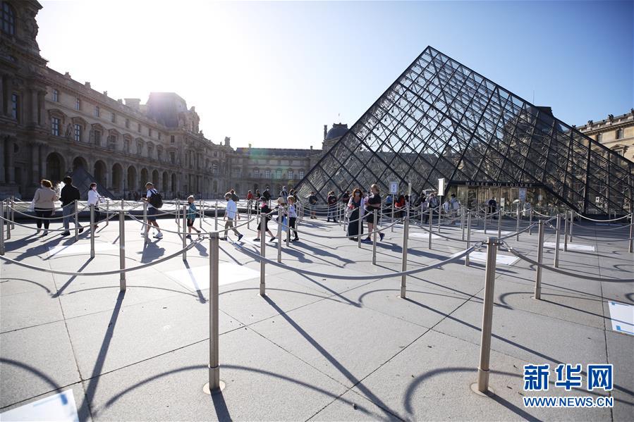 7月6日清晨,人們?cè)诜▏?guó)巴黎盧浮宮博物館外排隊(duì)等待進(jìn)入。因新冠病毒疫情關(guān)閉3個(gè)多月后,法國(guó)盧浮宮博物館于6日重新開(kāi)放。新華社記者高靜攝