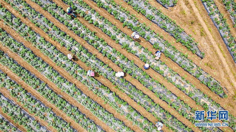 7月6日,貴州省六枝特區(qū)郎岱鎮(zhèn)青龍村村民在田地里勞作(無人機(jī)照片)。當(dāng)日是小暑節(jié)氣,貴州省各地農(nóng)民不誤農(nóng)時,忙碌在田間地頭。新華社記者陶亮攝