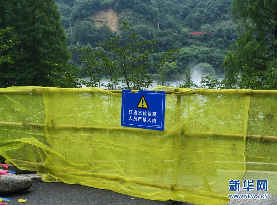 新安江畔的步道已被封閉(7月6日攝)。受連續(xù)強(qiáng)降雨影響,位于浙江建德的新安江水庫(kù)水位持續(xù)上漲。據(jù)浙江省水利廳發(fā)布的數(shù)據(jù),截至7月6日14時(shí),水庫(kù)水位上漲至106.54米,超汛限水位0.04米,且仍在上漲中。為確保水庫(kù)防洪安全、合理利用水資源,新安江水庫(kù)預(yù)計(jì)于7月7日開(kāi)啟泄洪閘泄洪。新華社記者翁忻旸攝