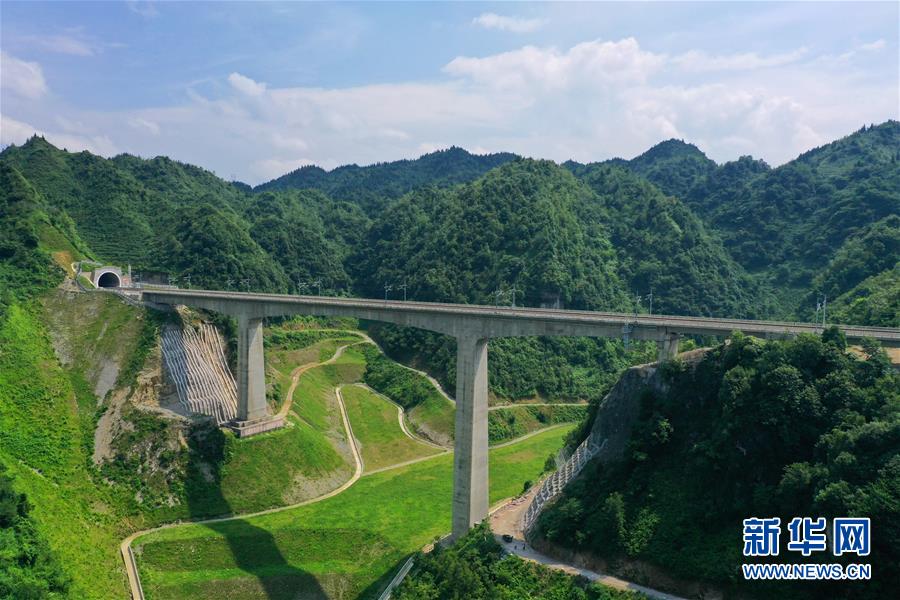 7月6日拍攝的安六鐵路彭家沖一號大橋附近的景觀(無人機照片)。當日,新建貴州安六鐵路(安順至六盤水)聯(lián)調(diào)聯(lián)試工作進入收尾階段,開通前的各項準備工作已基本就緒。安六鐵路線路全長約125公里,設計時速250公里,為國家I級雙線客運專線。建成投用后,貴陽至六盤水的鐵路旅行時間可從現(xiàn)在的3.5小時縮短為1小時左右,貴州省六盤水市將全面接入全國高鐵網(wǎng)。新華社記者劉續(xù)攝