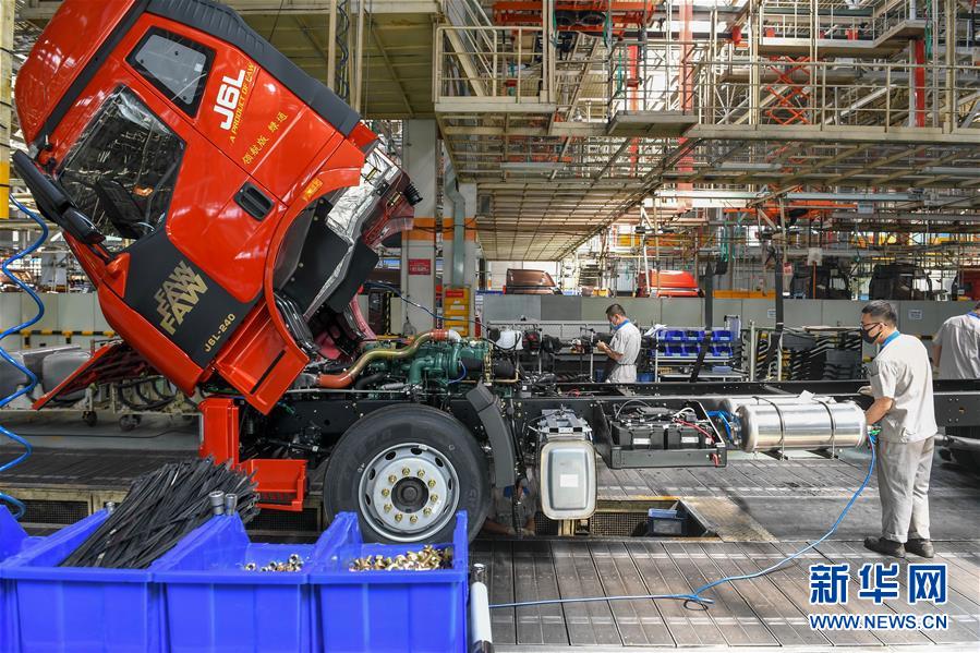 在位于長(zhǎng)春市的一汽解放總裝車間,工人在裝配車輛(6月19日攝)。中國(guó)第一汽車集團(tuán)披露,截至6月30日,集團(tuán)上半年共計(jì)生產(chǎn)整車162.23萬輛,同比增長(zhǎng)1.5%;銷售整車163.09萬輛,同比增長(zhǎng)2.3%。新華社記者張楠攝