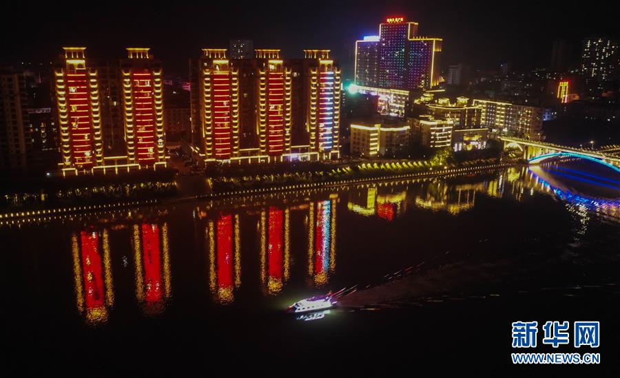 這是融安縣城一處夜景(7月7日攝,無人機照片)。夏夜的廣西融安縣城燈火璀璨,景色迷人。新華社記者張愛林攝