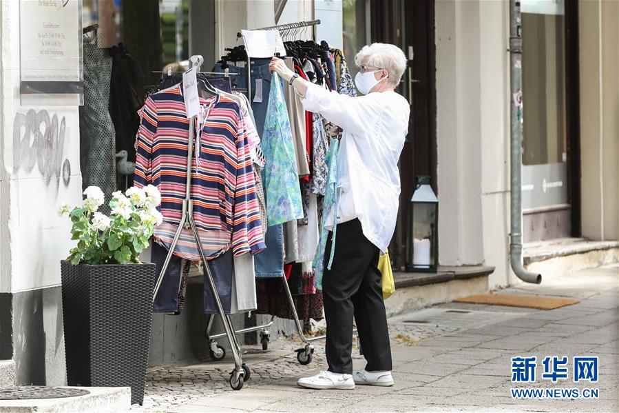 7月7日,一名佩戴口罩的女子在德國首都柏林的一家商店外挑選衣服。針對(duì)有地方官員呼吁取消民眾乘坐公交車和在商場(chǎng)購物時(shí)須戴口罩的規(guī)定,德國聯(lián)邦政府6日表示,支持延續(xù)“口罩強(qiáng)制令”。4月底,德國全部16個(gè)聯(lián)邦州陸續(xù)出臺(tái)“口罩強(qiáng)制令”,即居民在乘坐公交車和購物時(shí)須佩戴口罩。新華社記者單宇琦攝