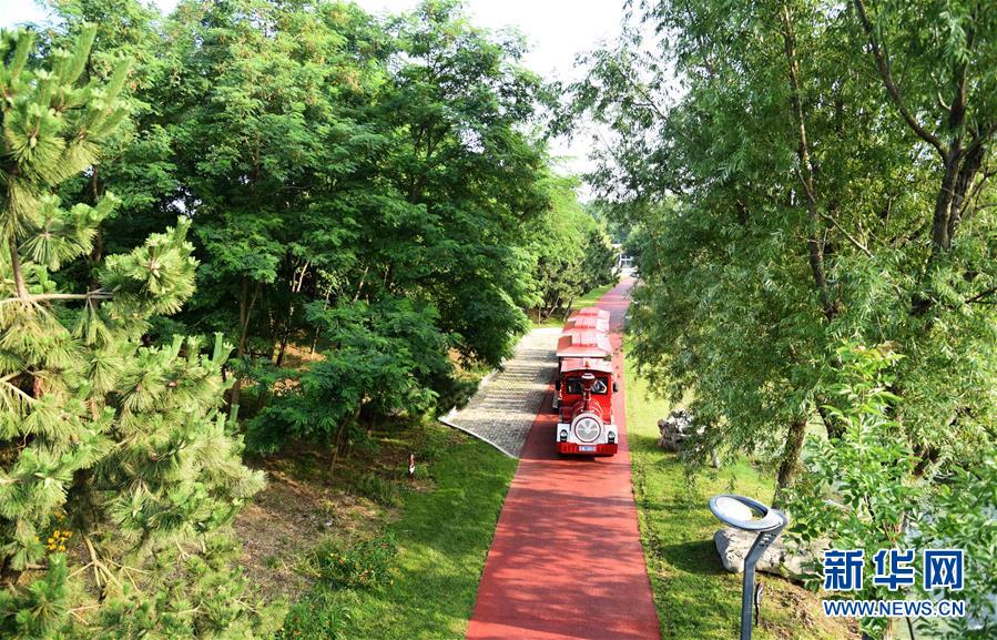 7月7日,游覽小火車穿梭在日照陽光海岸綠道內。新華社記者王凱攝