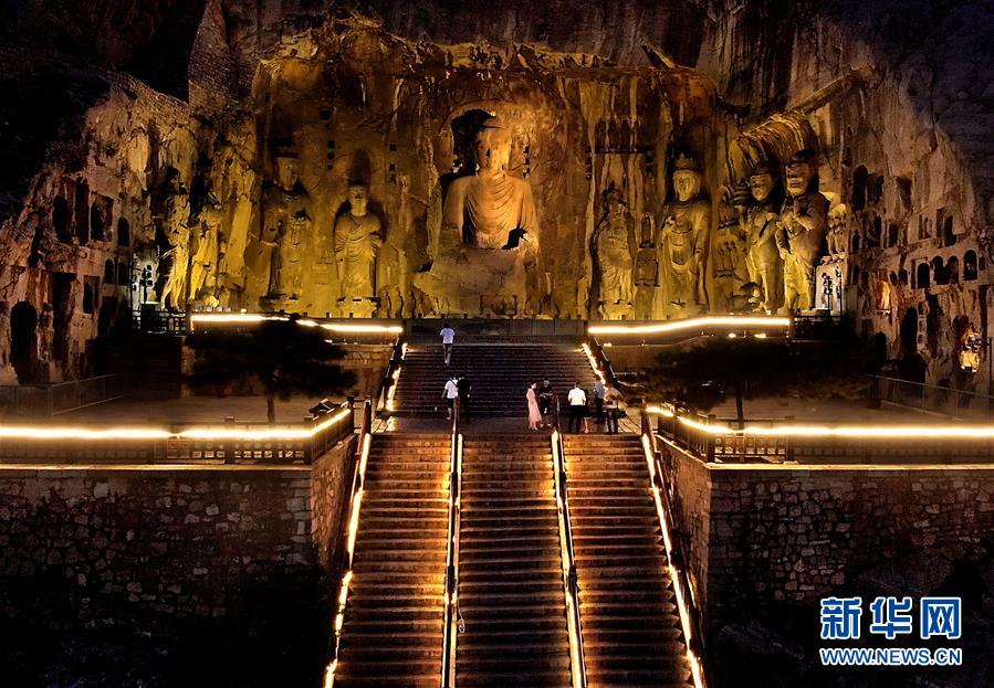 7月7日拍攝的洛陽龍門石窟景區(qū)夜景(無人機(jī)照片)。近日,河南洛陽的夜晚愈發(fā)繽紛多彩。立足于厚重的隋唐文化底蘊(yùn),洛陽正通過創(chuàng)新夜游產(chǎn)品打響“古都夜八點(diǎn)”品牌,激活文旅消費(fèi)。新華社記者李安攝
