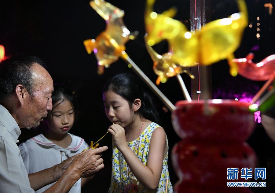 7月7日晚,小朋友在洛陽洛邑古城內(nèi)吹糖人。近日,河南洛陽的夜晚愈發(fā)繽紛多彩。立足于厚重的隋唐文化底蘊(yùn),洛陽正通過創(chuàng)新夜游產(chǎn)品打響“古都夜八點(diǎn)”品牌,激活文旅消費(fèi)。新華社記者李安攝