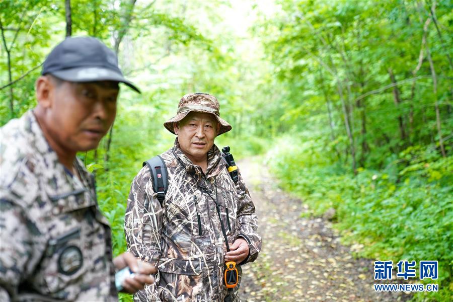 董紅雨在迎春林業(yè)局有限公司施業(yè)區(qū)內(nèi)進(jìn)行野生東北虎蹤跡信息搜集和巡護(hù)工作(7月8日攝)。新華社記者李建平攝