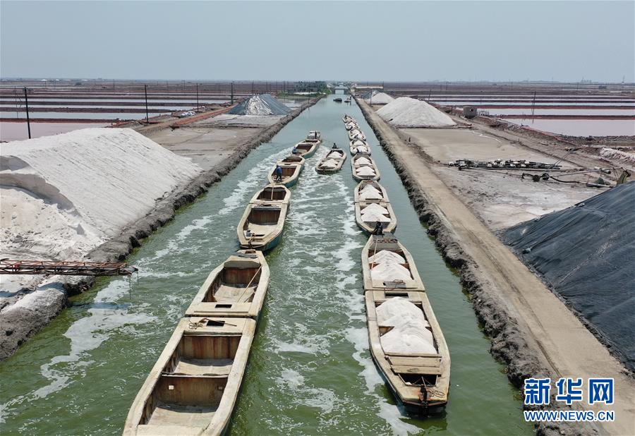 7月9日,唐山市曹妃甸區(qū)南堡鹽場(chǎng)的運(yùn)鹽船只在運(yùn)輸河道內(nèi)行駛(無(wú)人機(jī)照片)。在我國(guó)長(zhǎng)蘆鹽區(qū)海鹽生產(chǎn)基地之一的河北省唐山市曹妃甸區(qū)南堡鹽場(chǎng),一年一度的春鹽收獲工作即將結(jié)束,今年南堡鹽場(chǎng)的春鹽產(chǎn)量預(yù)計(jì)可達(dá)72萬(wàn)噸。新華社記者楊世堯攝