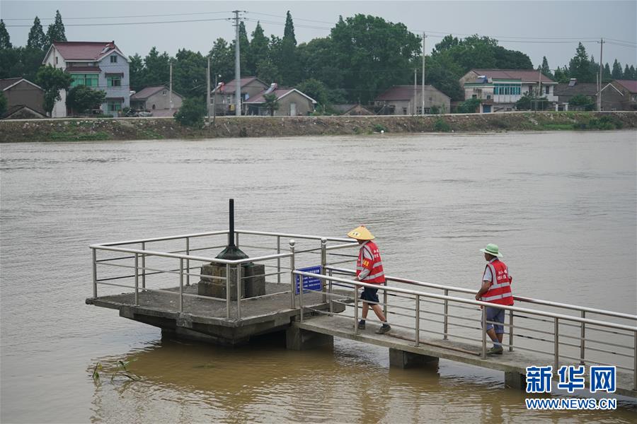 7月9日,巡堤員在檢查高淳區(qū)陽江鎮(zhèn)永豐圩涵閘。新華社記者季春鵬攝