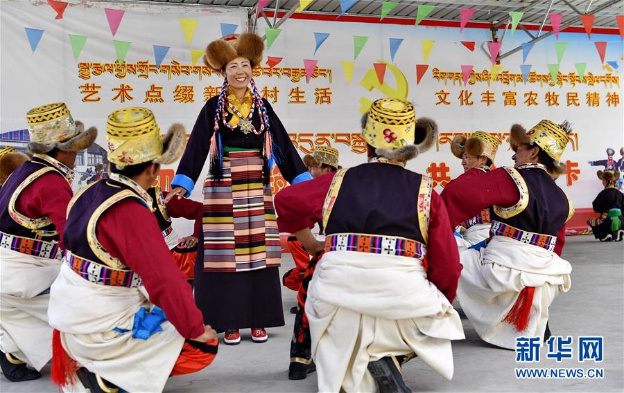 山南市扎囊縣桑耶鎮(zhèn)乃卡村文藝演出隊(duì)為村民表演節(jié)目(7月7日攝)。新華社記者張汝鋒攝