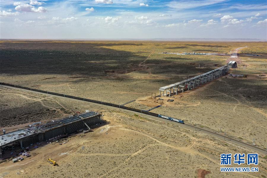 烏瑪高速青銅峽至中衛(wèi)段穿越騰格里沙漠的18公里路段,與中國(guó)首條沙漠鐵路——包蘭鐵路交匯(7月10日攝,無(wú)人機(jī)照片)。盛夏時(shí)節(jié),位于寧夏境內(nèi)的烏瑪(內(nèi)蒙古烏海市至青?,斍呖h)高速青銅峽至中衛(wèi)段正在抓緊施工建設(shè)。該路段主線(xiàn)全長(zhǎng)122.9公里,其中穿越騰格里沙漠腹地的18公里公路是寧夏建設(shè)的首條沙漠高速公路,預(yù)計(jì)2021年建成通車(chē)。新華社記者馮開(kāi)華攝。