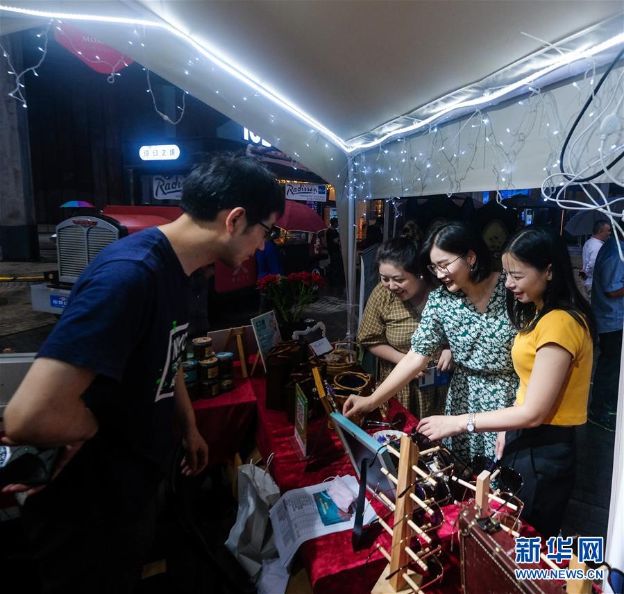 7月10日,市民在嘉年華現(xiàn)場的特色商品攤位上挑選飾品。新華社記者徐昱攝。