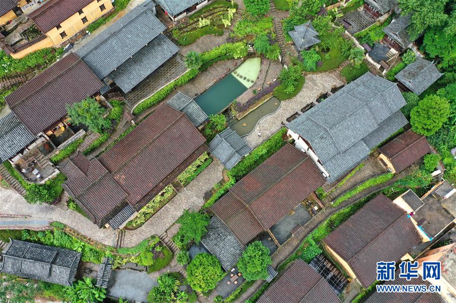 7月11日拍攝的金秀瑤族自治縣六巷鄉(xiāng)的一處民宿(無人機照片)。近年來,廣西金秀瑤族自治縣依托當(dāng)?shù)刈匀簧鷳B(tài)優(yōu)勢,圍繞境內(nèi)豐富的瑤族文化,大力發(fā)展鄉(xiāng)村旅游,精心打造一批獨具瑤族特色的山間民宿酒店,取得良好經(jīng)濟效益。新華社記者 周華 攝