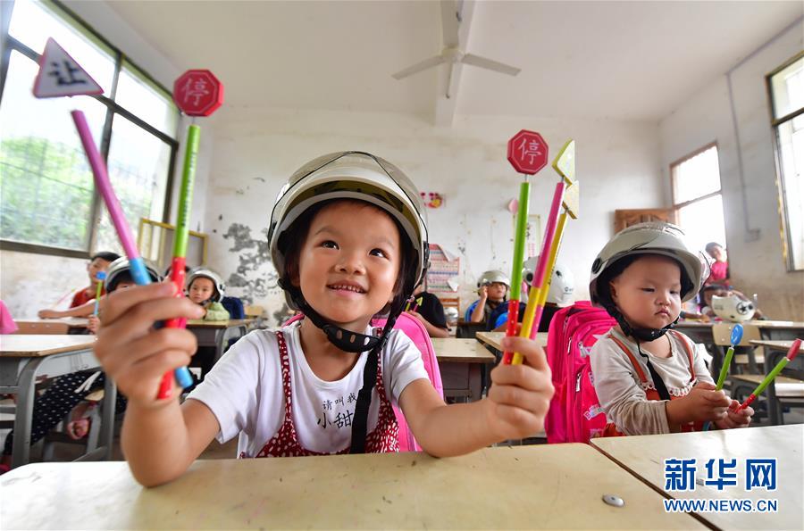 7月11日,小朋友們?cè)诮煌ò踩R(shí)課上學(xué)習(xí)。當(dāng)日,廣西柳州市交警支隊(duì)的民警來到融水苗族自治縣大浪鎮(zhèn)大新村紅鄧屯教學(xué)點(diǎn),開展暑期交通安全教育活動(dòng),增強(qiáng)孩子們的安全出行意識(shí)。新華社記者黃孝邦攝
