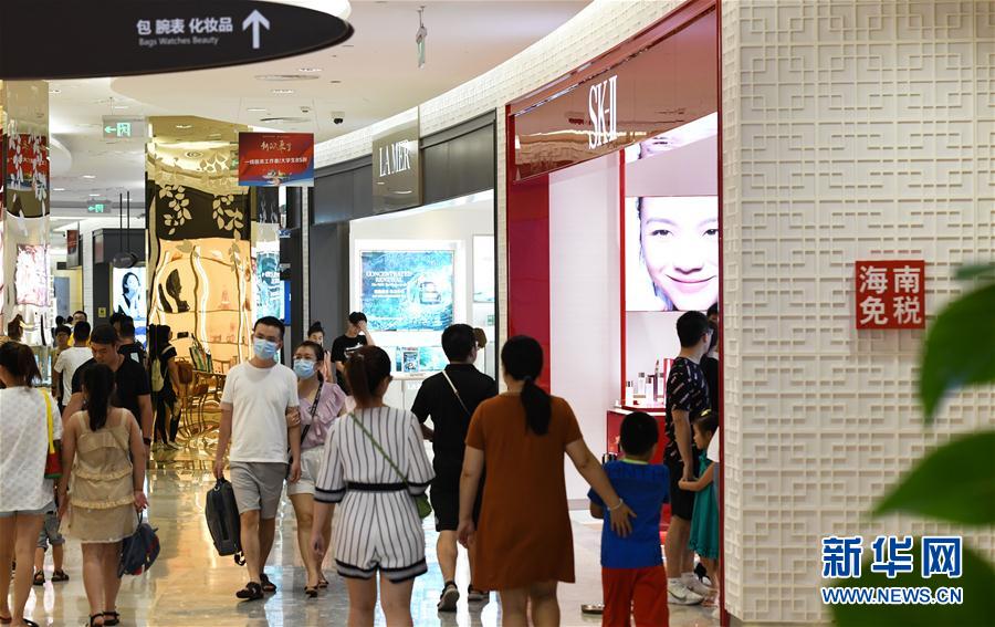 7月12日,游客在??谌赵聫V場(chǎng)免稅店購(gòu)物。新華社記者 楊冠宇 攝