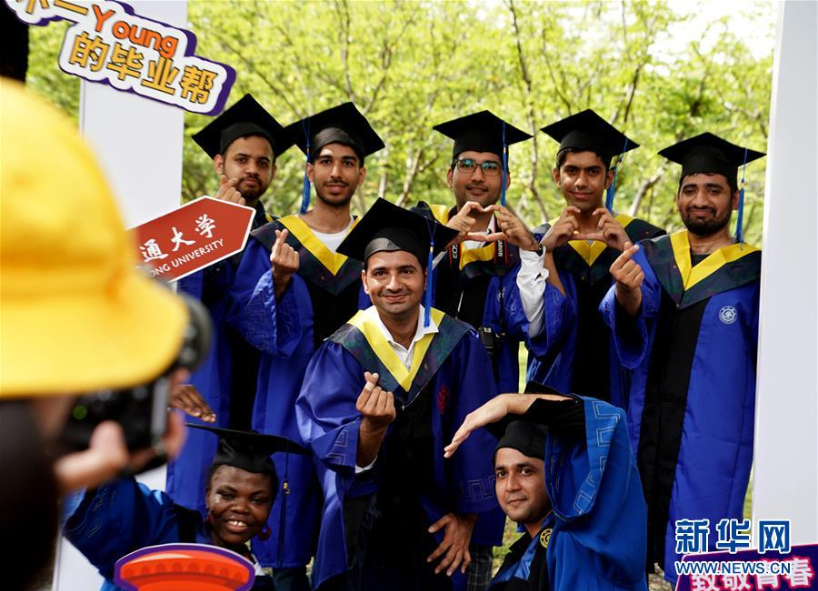 7月12日,上海交通大學(xué)留學(xué)生畢業(yè)生在校園里合影留念。新華社記者 劉穎 攝