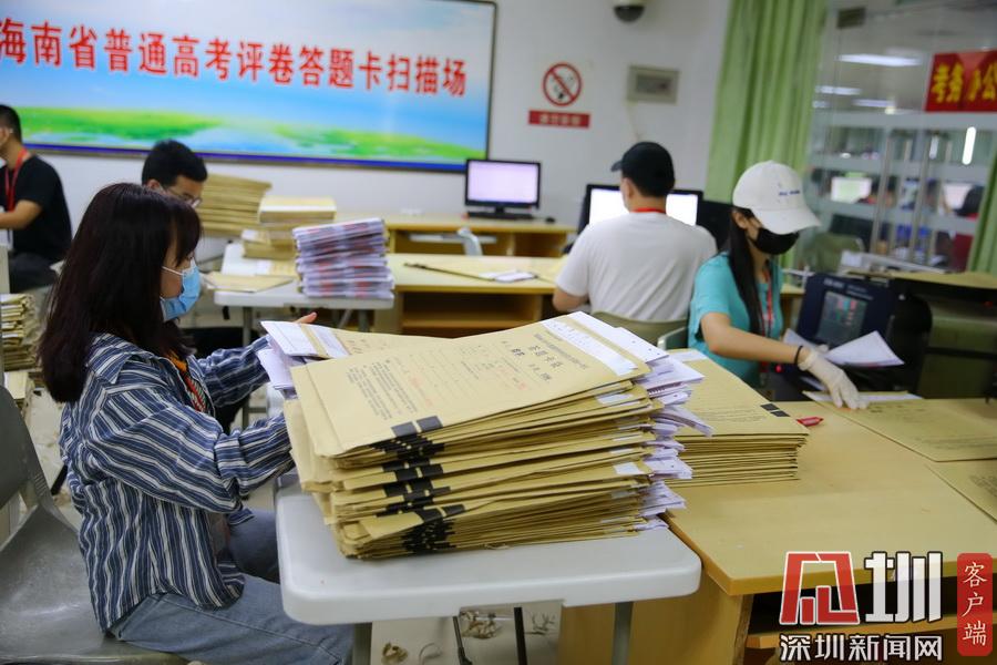 2020年7月13日,在海南師范大學(xué)高考評卷場,工作人員仔細(xì)拆封考卷并進(jìn)行掃描入電腦,整個過程井然有序。在評卷現(xiàn)場的入口,除了有武警把守之外,所有工作人員進(jìn)入到評卷場均有專人使用手柄式金屬探測器對其進(jìn)行安檢,并通過身份證識別系統(tǒng)中進(jìn)行身份識別,方可以進(jìn)入??忌痤}卡由武警24小時值守,并實行嚴(yán)密的視頻監(jiān)控。