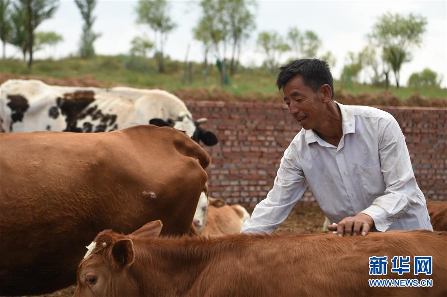 7月14日,高二仁在觀察牛的生長(zhǎng)情況。新華社記者 李志鵬 攝