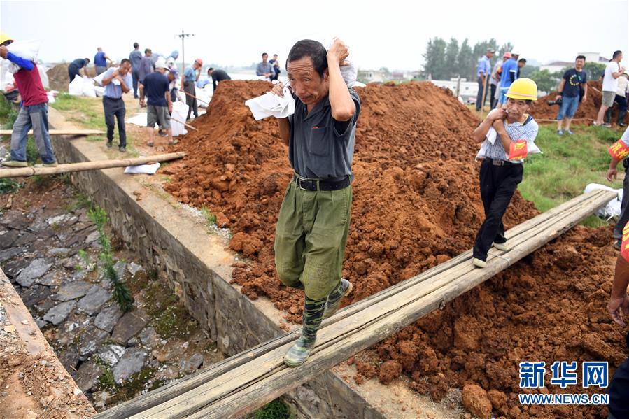 7月14日,當(dāng)?shù)卮迕裢簧习徇\(yùn)砂石袋。近日,受洪水影響,安徽省望江縣華陽(yáng)鎮(zhèn)境內(nèi)的江調(diào)圩內(nèi)部道路漫水,搶險(xiǎn)車(chē)輛無(wú)法進(jìn)入。當(dāng)?shù)胤姥床块T(mén)組織船只裝載砂石袋等防汛物資,運(yùn)往圩堤保防汛。新華社記者 劉軍喜 攝